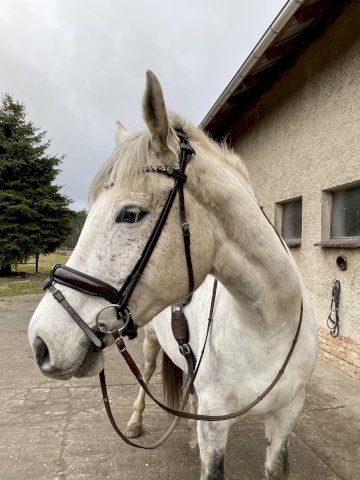 Ich habe ewig nach einer rundgenähten Trense mit Lack-Nasenriemen, der gut gepolstert ist und natürlich in der passenden Größe für mein Riesenbaby gesucht. Das habe ich bei Bridlery gefunden! Mein schwerer Warmblut Wallach hat einen so großen Kopf, bei dem teilweise die Kaltblutgröße nicht richtig passt.. Die Größe Kaltblut von dieser Trense schon (Umfang Nasenriemen 70cm bei meinem)! Und wir haben noch Luft! Ich bin total begeistert, das Leder ist super weich, die Passform ist wunderbar und dazu sieht das ganze einfach nur wunderschön aus! Vorallem mit dem Stunning White Stirnriemen! Im Endeffekt ist das Pferd zufrieden und ich bin es auch! Abschließend muss ich auch noch sagen, dass der Service super ist! Vielen Dank!