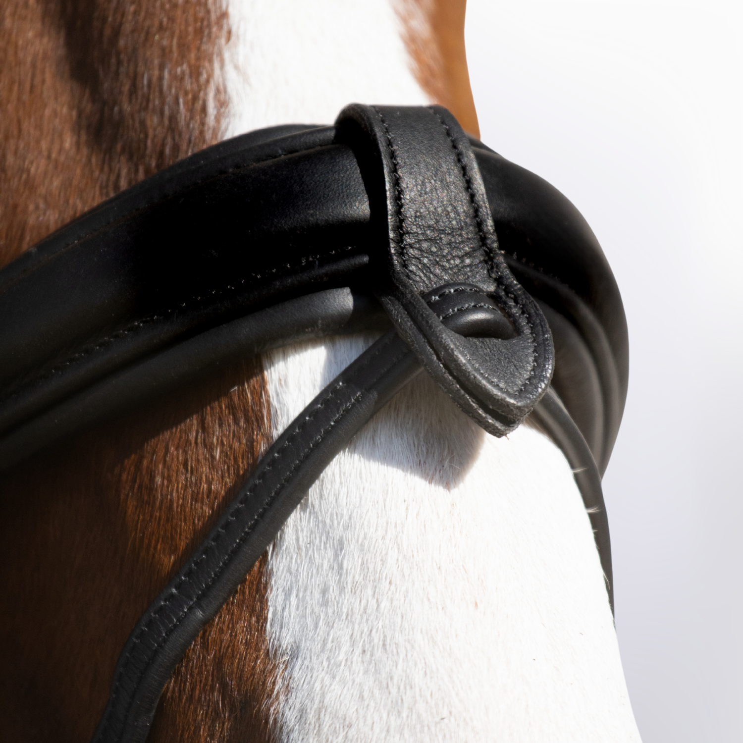 Der Nasenriemen besteht aus besonders weichem Softleder, das sich perfekt an die Form des Pferdekopfes anschmiegt. Durch die zusätzliche Polsterung wird der Druck optimal verteilt – für höchsten Komfort und ein ruhiges, zufriedenes Pferdemaul.