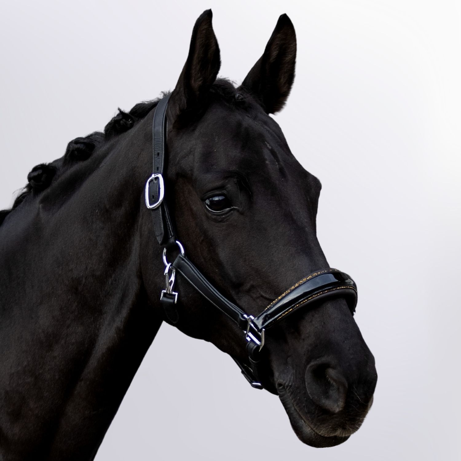 Entdecke das edle Design des Halfters Glory – farblich unterlegt und mit feinem Glitzer veredelt. Dieses exklusive Halfter vereint zeitlose Eleganz mit moderner Raffinesse und macht dein Pferd garantiert zum Blickfang – im Stall, auf dem Turnier oder unterwegs.