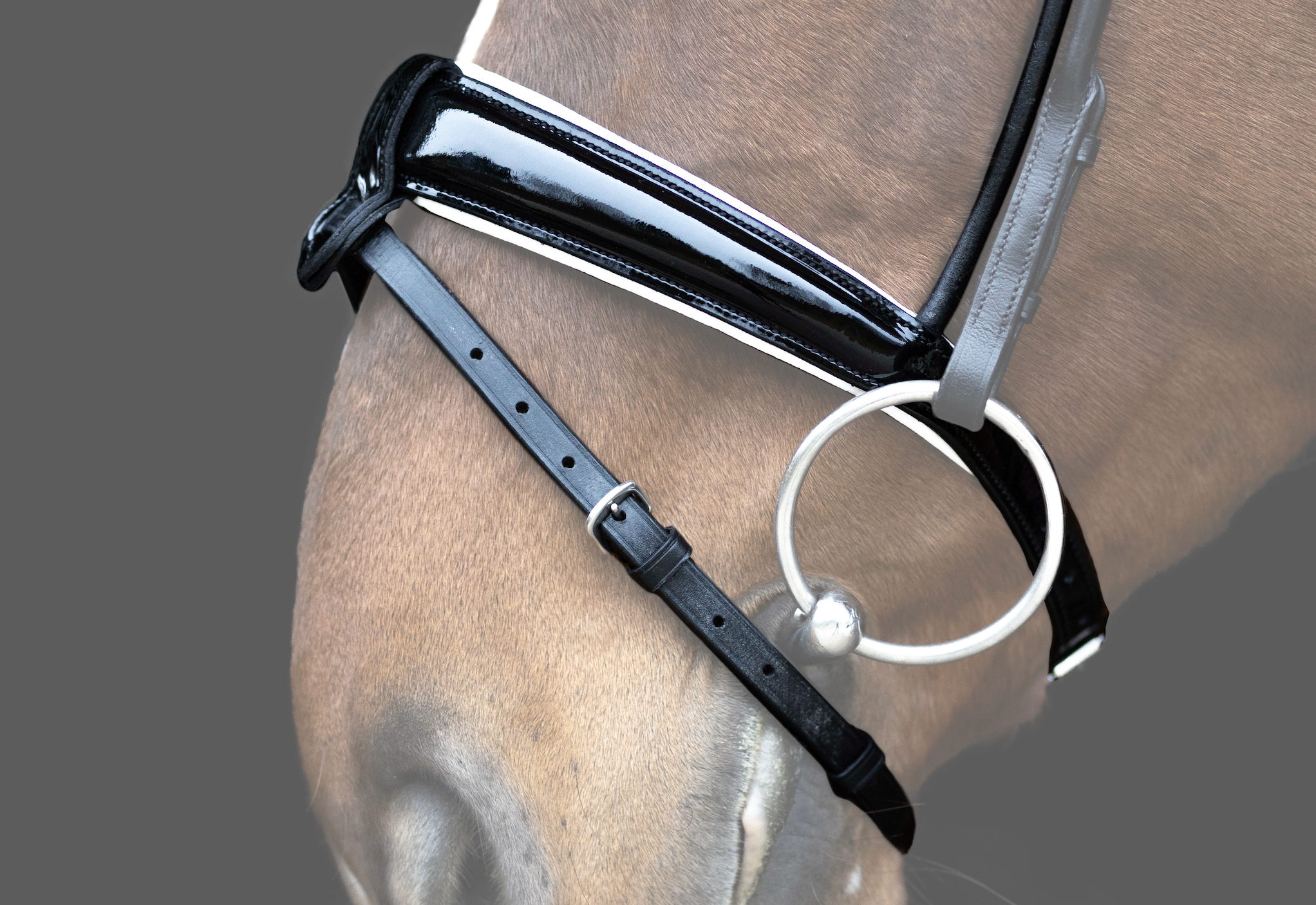 Nasenriemen Classic Schwarz Vollblut Silber Englisch Lack Weiß-unterlegt