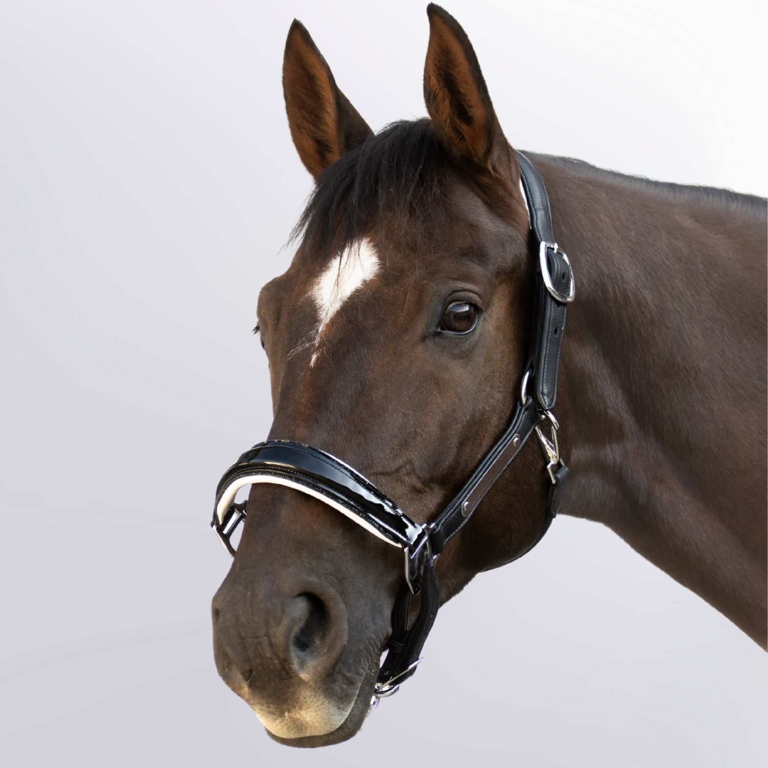 Du liebst das Besondere? Dann ist das Soft-Lederhalfter Aurora dein neues Must-have! Mit elegantem schwarzen Glitzer, glänzendem Lackleder und einer edlen weißen Polsterung zieht dein Pferd alle Blicke auf sich – ganz ohne auf Komfort zu verzichten.