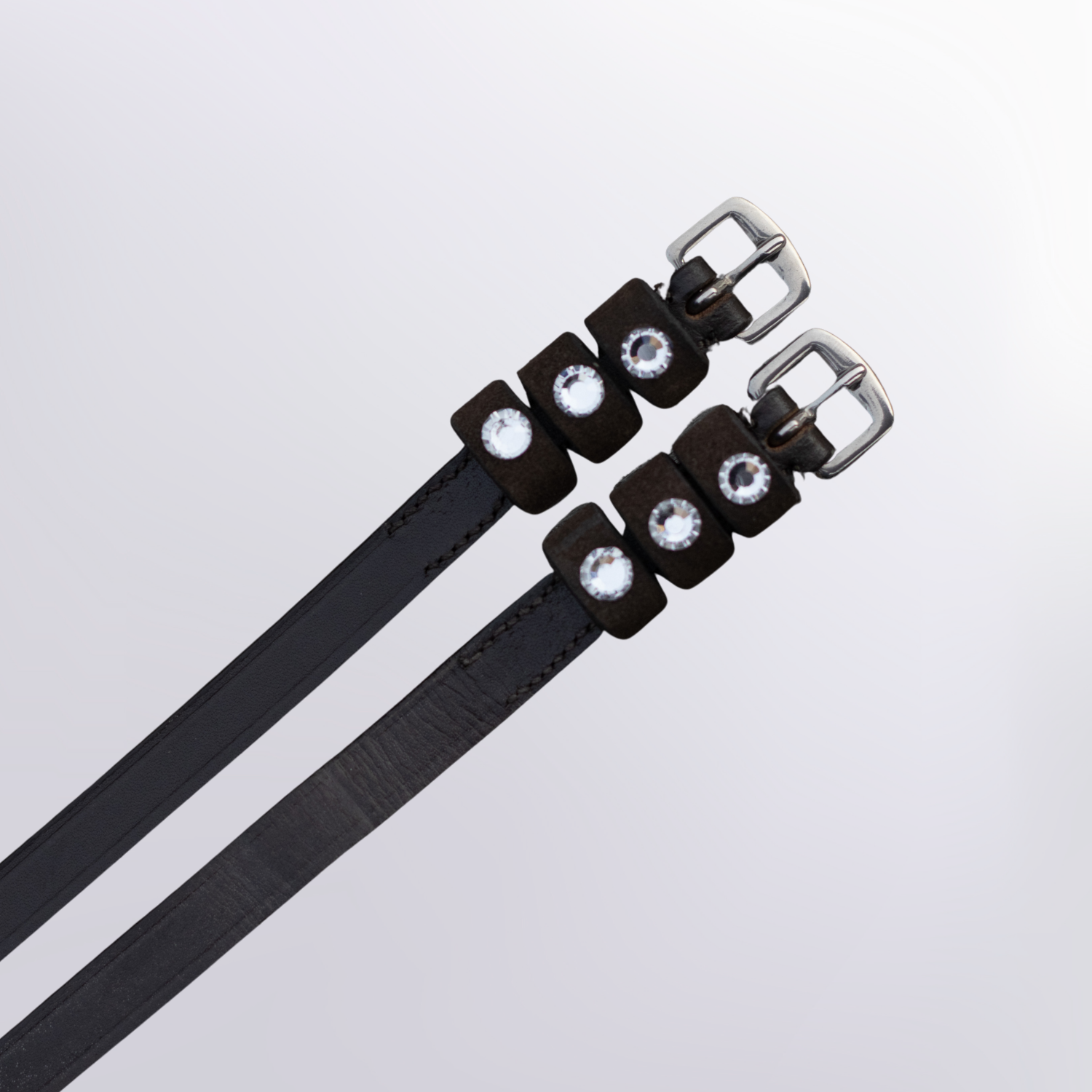 Setze ein funkelndes Statement mit unseren Sporenriemen "Lovely Bling". Jedes Detail wurde sorgfältig gestaltet, um perfekt zu deinem Outfit zu passen. Diese stilvollen Riemen verleihen deinem Stalloutfit den letzten Schliff. Das pflanzlich gegerbte Leder verspricht nicht nur Langlebigkeit, sondern auch höchste Qualität.